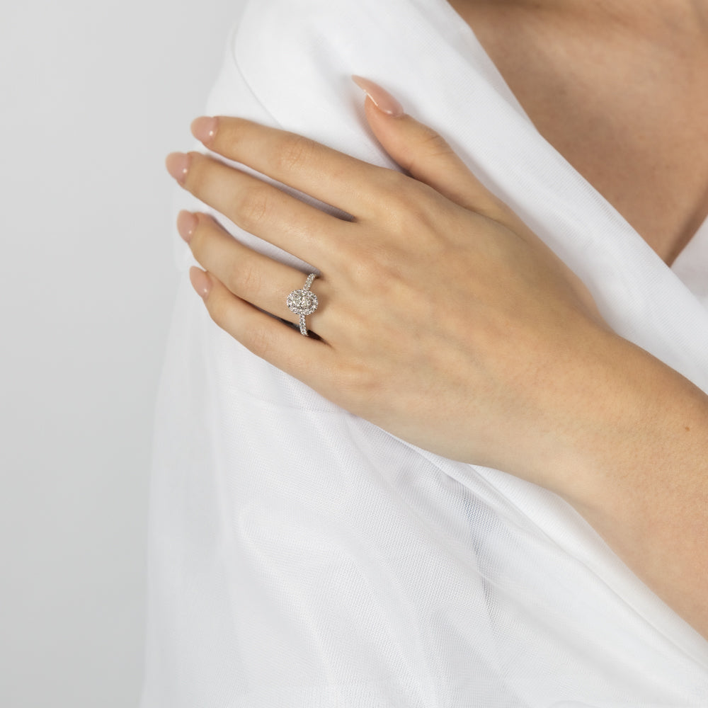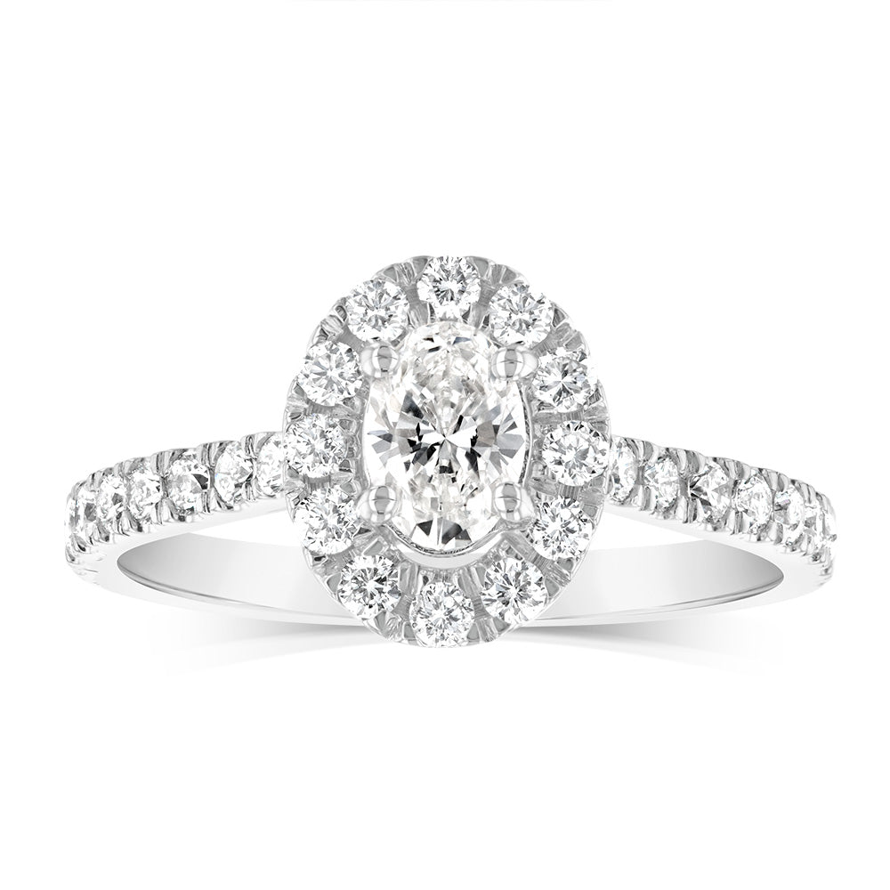 Luminesce Lab Grown 9ct White Gold 1 Carat Diamond Halo Solitaire Ring with Oval Centre Diamond