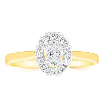 Luminesce Lab Grown 9ct yellow Gold 0.40 Carat Halo Oval Brilliant Cut Ring