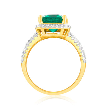 Luminesce Lab Grown 9ct Yellow Gold 0.45 Carat Diamond with 3.25ct Created Emerald