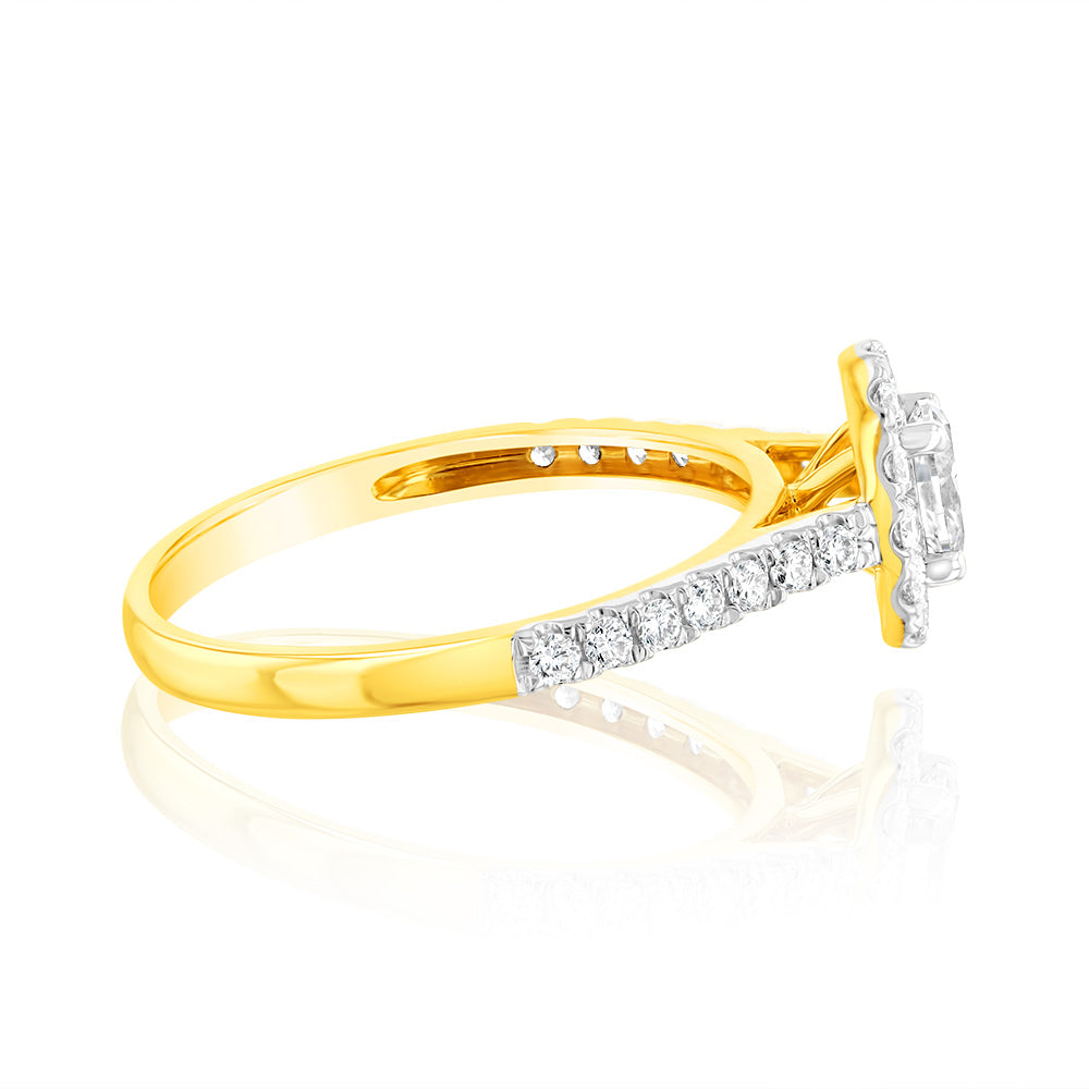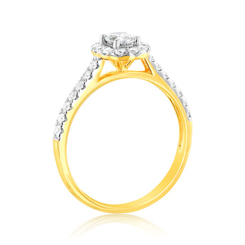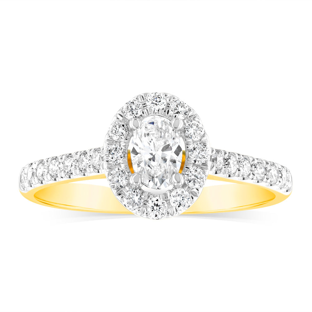 Luminesce Lab Grown 9ct yellow Gold 0.55 Carat Halo Oval Brilliant Cut Ring