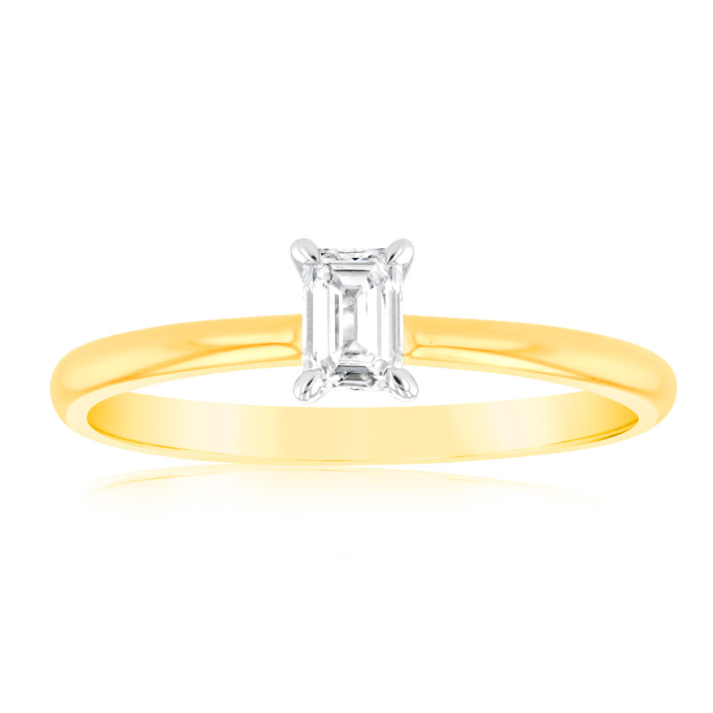 Luminesce Lab Grown 9ct Yellow Gold 1/4 Carat Emerald Cut Solitaire Diamond Ring