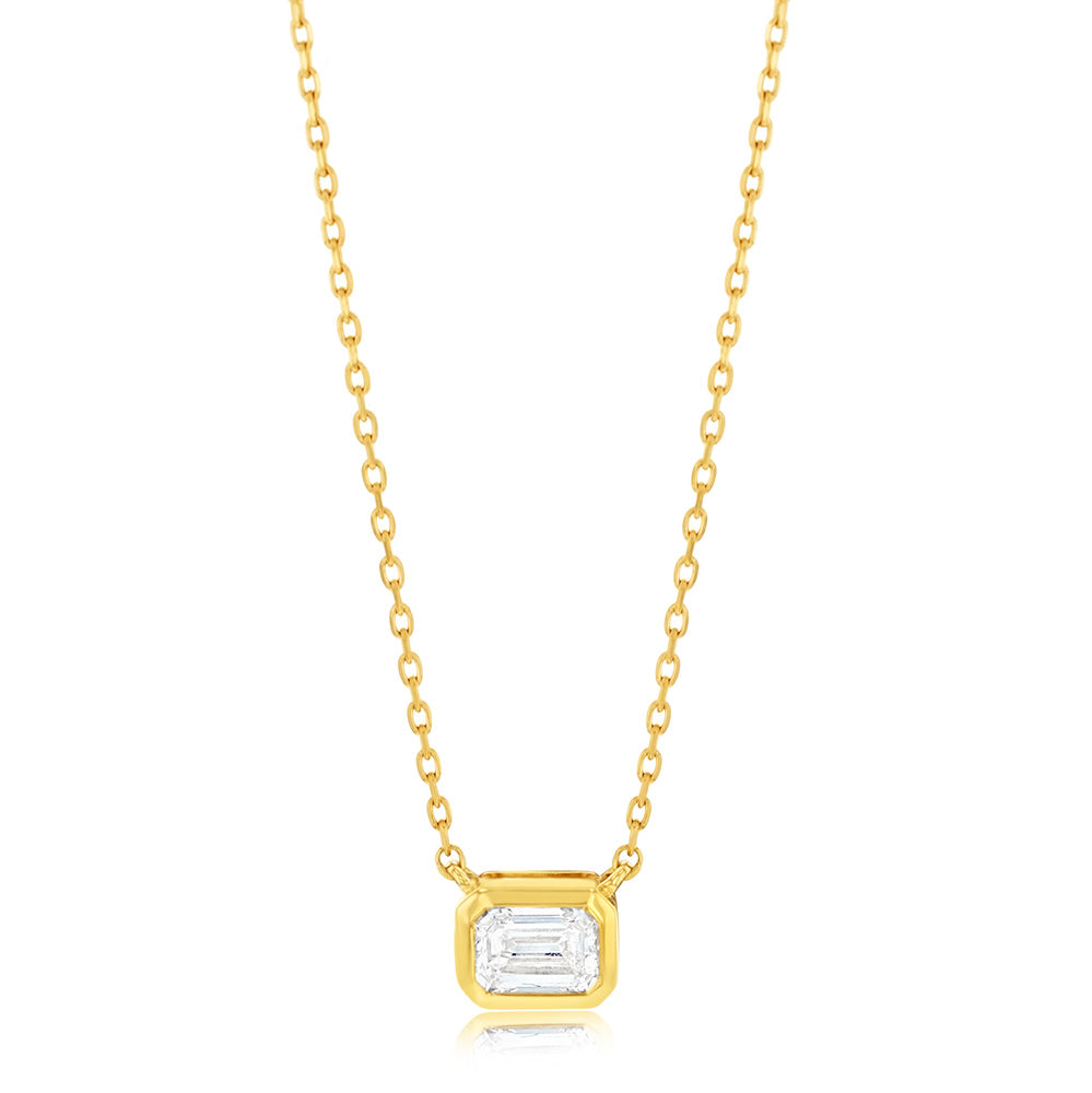 Luminesce Lab Grown 9ct Yellow Gold 1/5 Carat Diamond Emerald Shaped Bezel Pendant