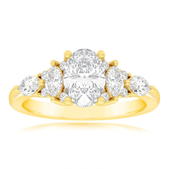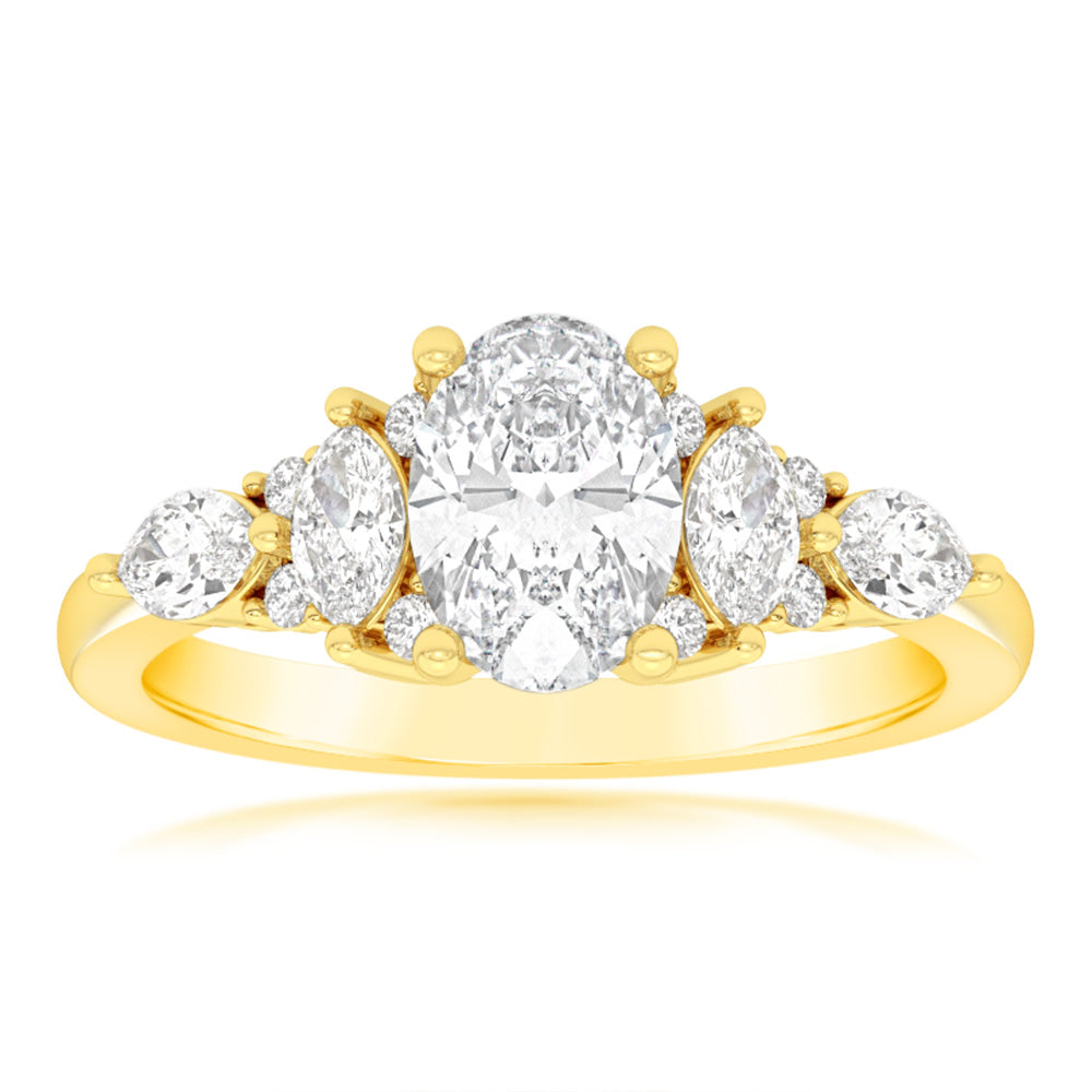 Luminesce Lab Grown 1.5 Carat Diamond Ring with 1 Carat Oval Centre in 9ct Yellow Gold