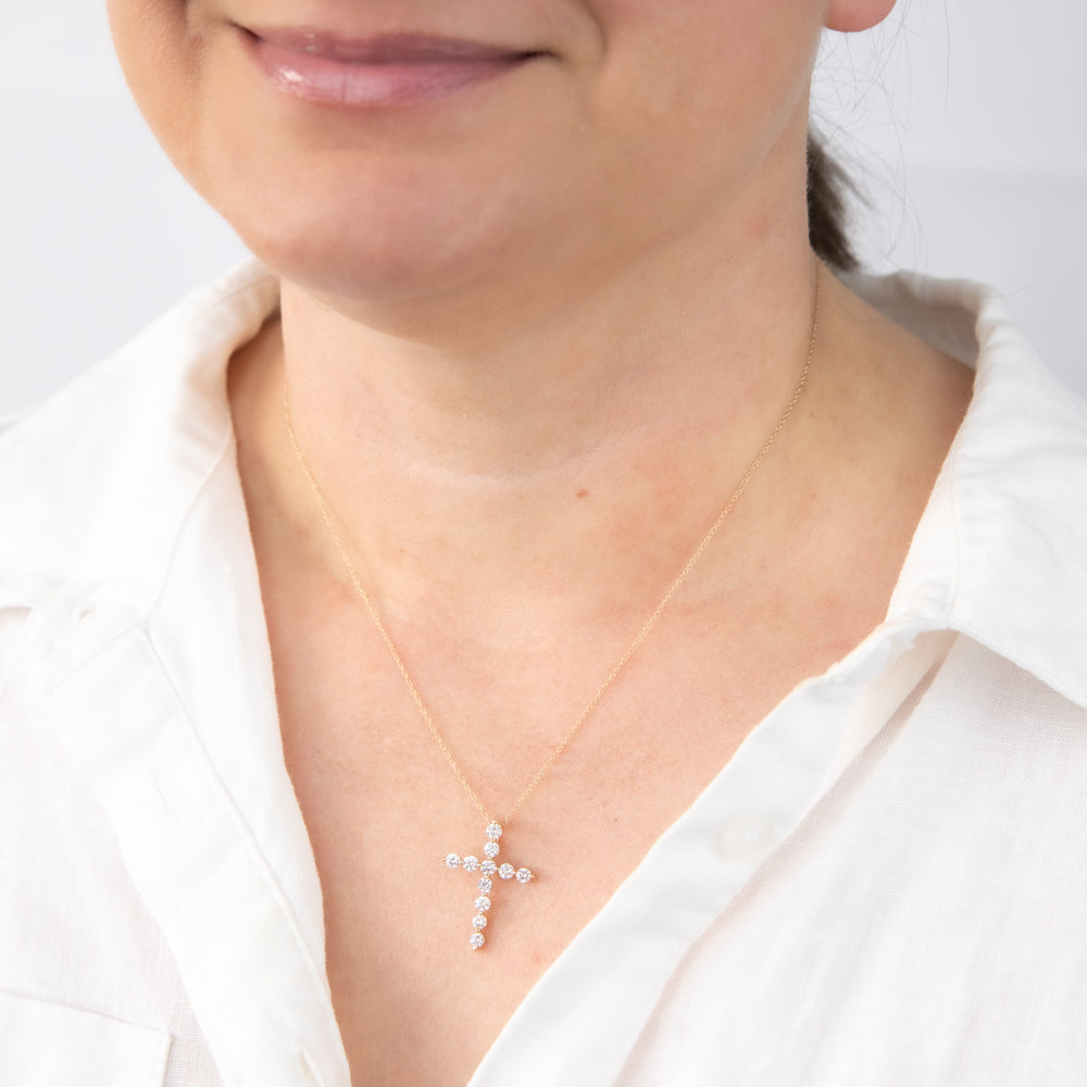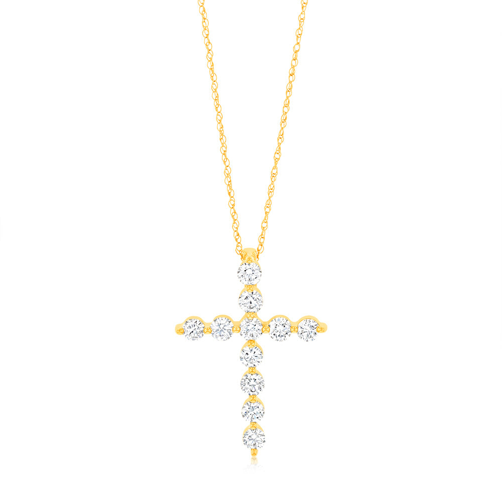 Luminesce Lab Grown 9ct Yellow Gold 1 Carat Cross Pendant with Chain