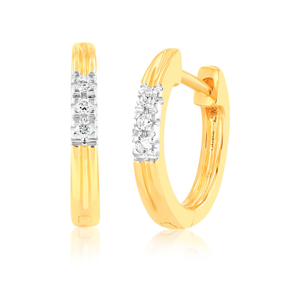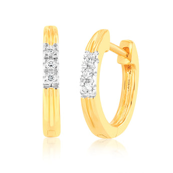 Luminesce Lab Grown 9ct Yellow Gold 6 Diamonds Hoop Earrings