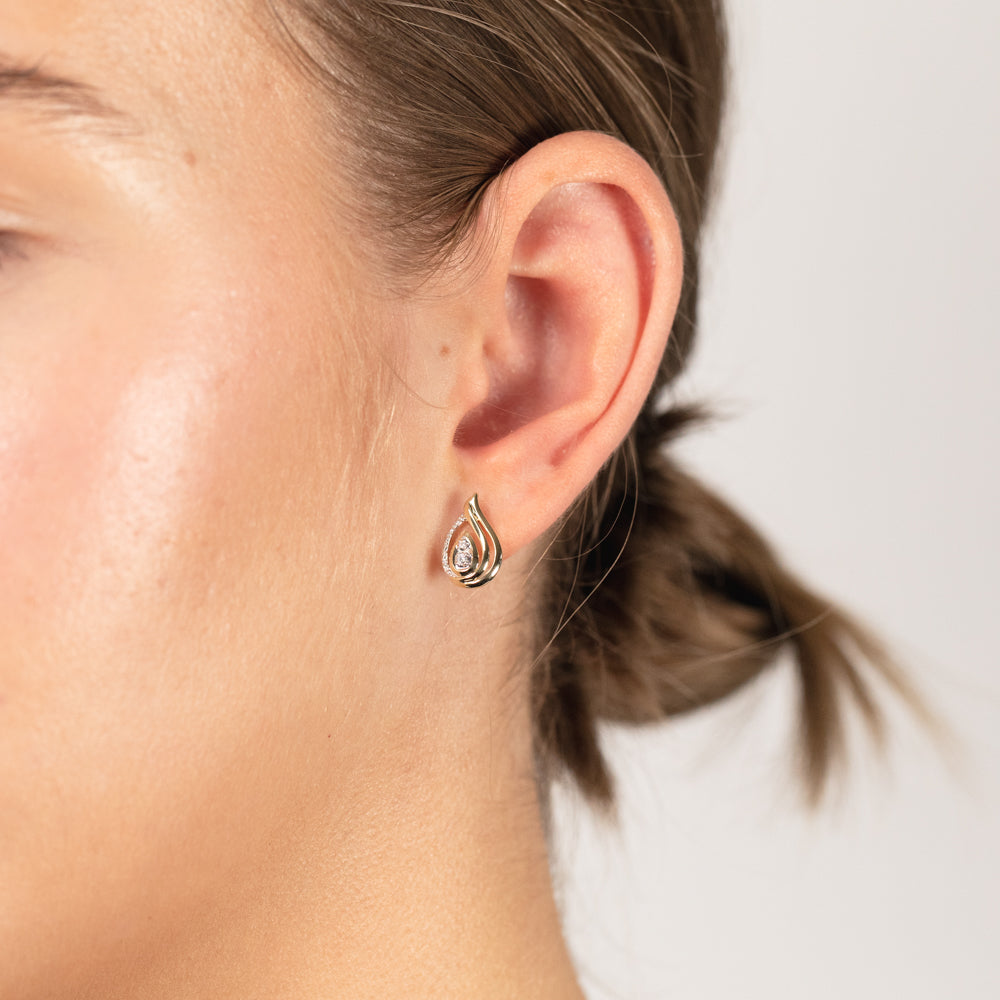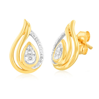 Luminesce Lab Grown 9ct Yellow Gold Pear Shaped Stud Earrings With 4 Diamonds