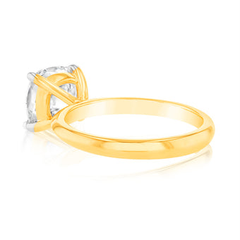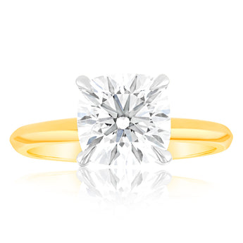Luminesce Lab Grown Certified 2 Carat Diamond Cushion Cut Ring in 18ct Yellow Gold