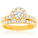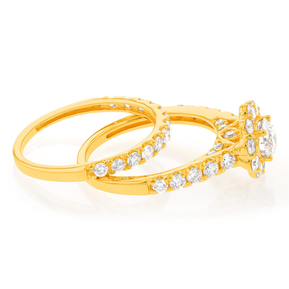Luminesce Lab Grown Diamond 1.5Ct Bridal Set in Halo Design set in 14ct Yellow Gold
