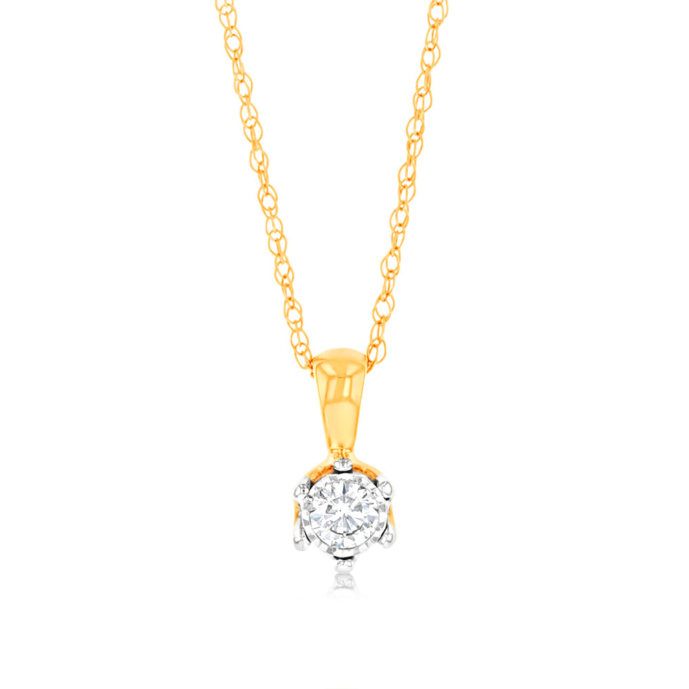 Luminesce Lab Grown Diamond 6 Claw Solitaire Pendant in 9ct Yellow Gold With Chain