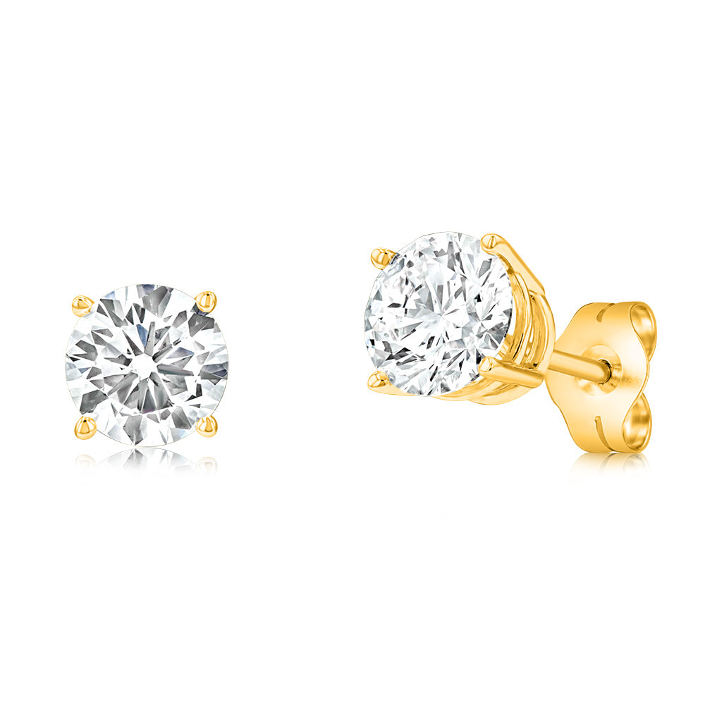 Luminesce Lab Grown Diamond TW=1.5 Carat Solitaire Stud Earrings in 14ct Yellow Gold