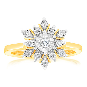 Luminesce Lab Grown Dress Ring with 13 Diamonds Set in 9 Carat Yellow Gold