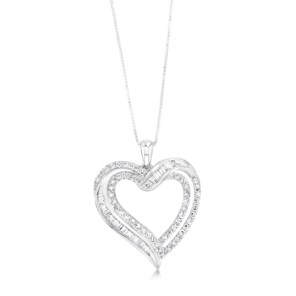 Luminesce Lab Grown Heart Pendant in 1 Carat Diamond & Baguettes with Silver Slider Chain