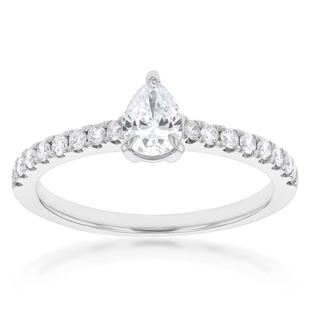 Luminesce Lab Grown Pear Diamond Engagement Ring with 16 Side Diamonds in 18ct WG