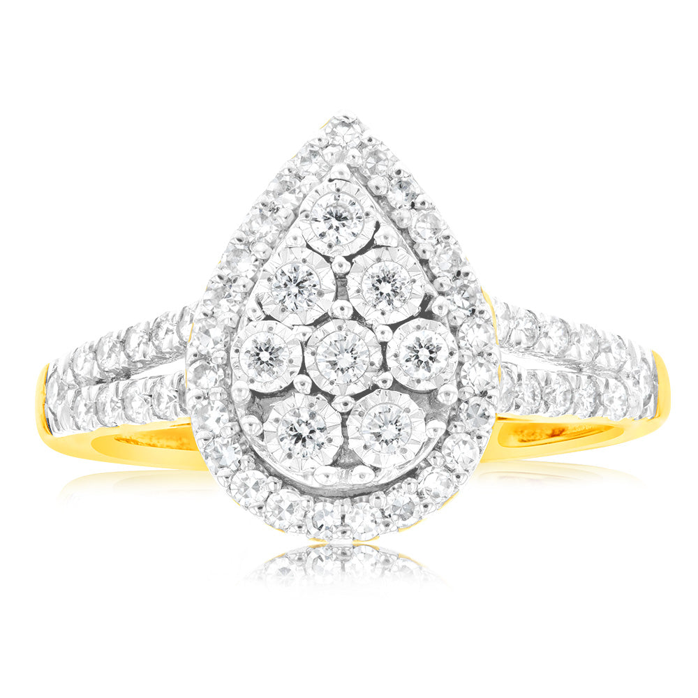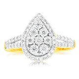 Luminesce Lab Grown Pear Ring with 1/2 Carat 54 Diamonds Set in 9 Carat Yellow Gold