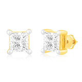 Luminesce Lab Grown Princess Cut 1 Carat Diamond Stud Earrings in 14ct Yellow Gold