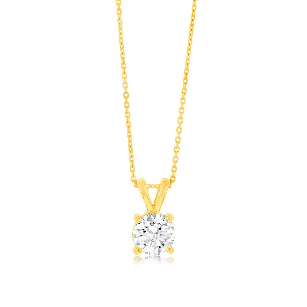 Luminesce Lab Grown Solitaire 1.5Ct Diamond Pendant in 9ct Yellow Gold with Adjustable Chain