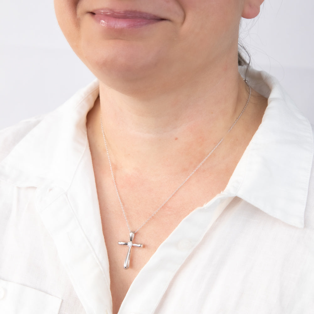 Luminesce Lab Grown Sterling Silver 1/6 Carat Cross Diamond Pendant 45cm Chain Included