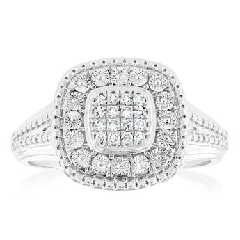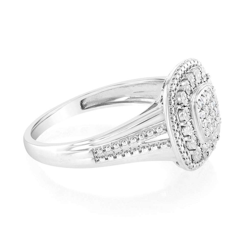 Luminesce Lab Grown Sterling Silver Cluster Shaped Diamond Ring