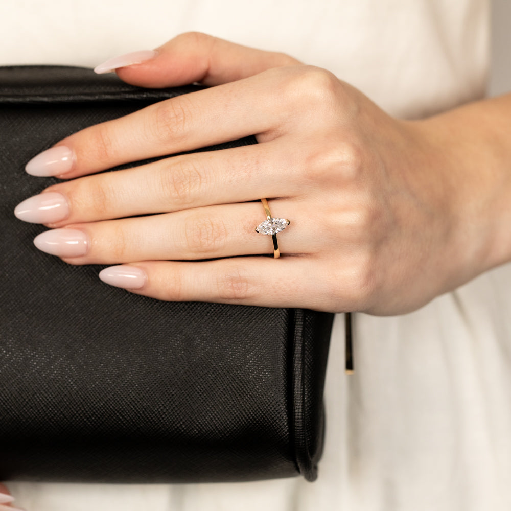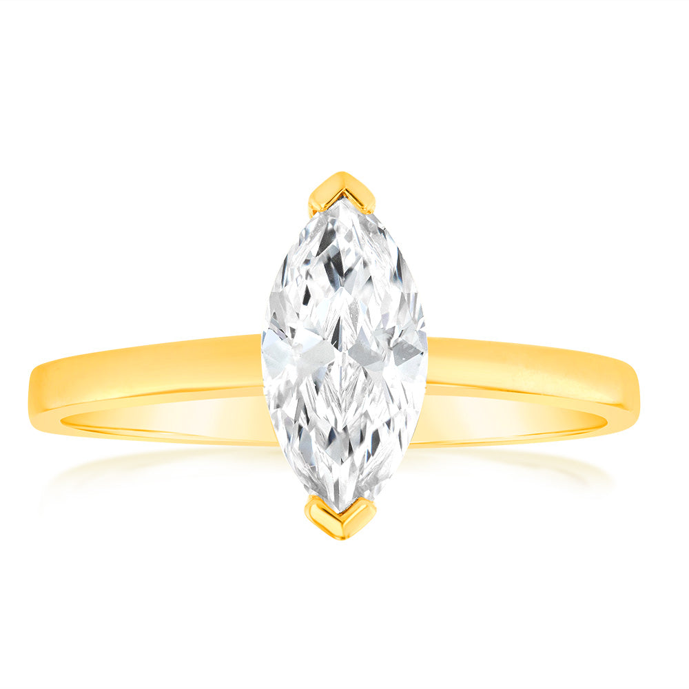Marquise Cut Cubic Zirconia Ring 1 Carat Look in in 9ct Yellow