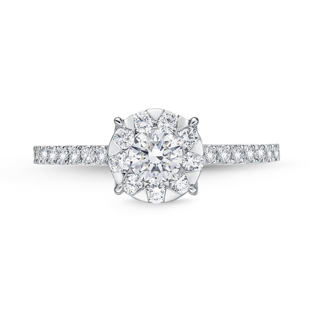 Memoire 18ct White Gold 0.45 Carat Diamond Bouquet Halo Solitaire Ring