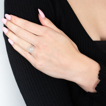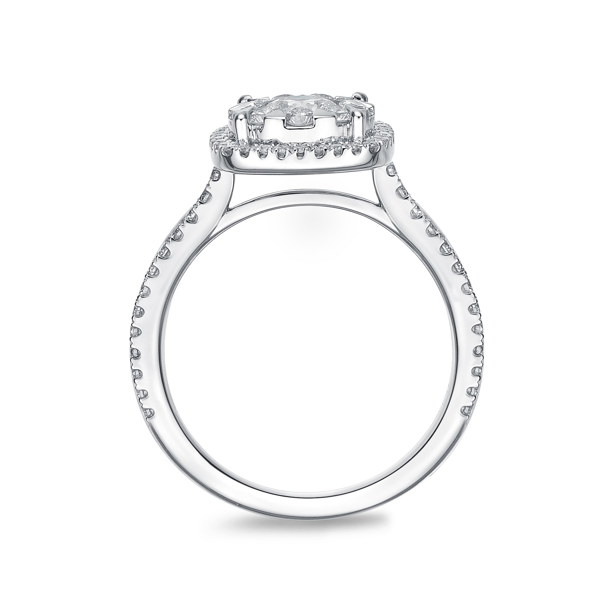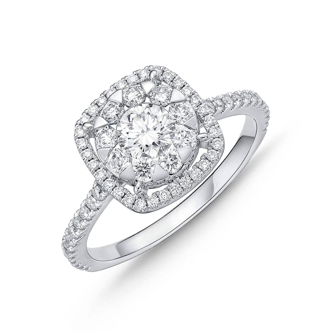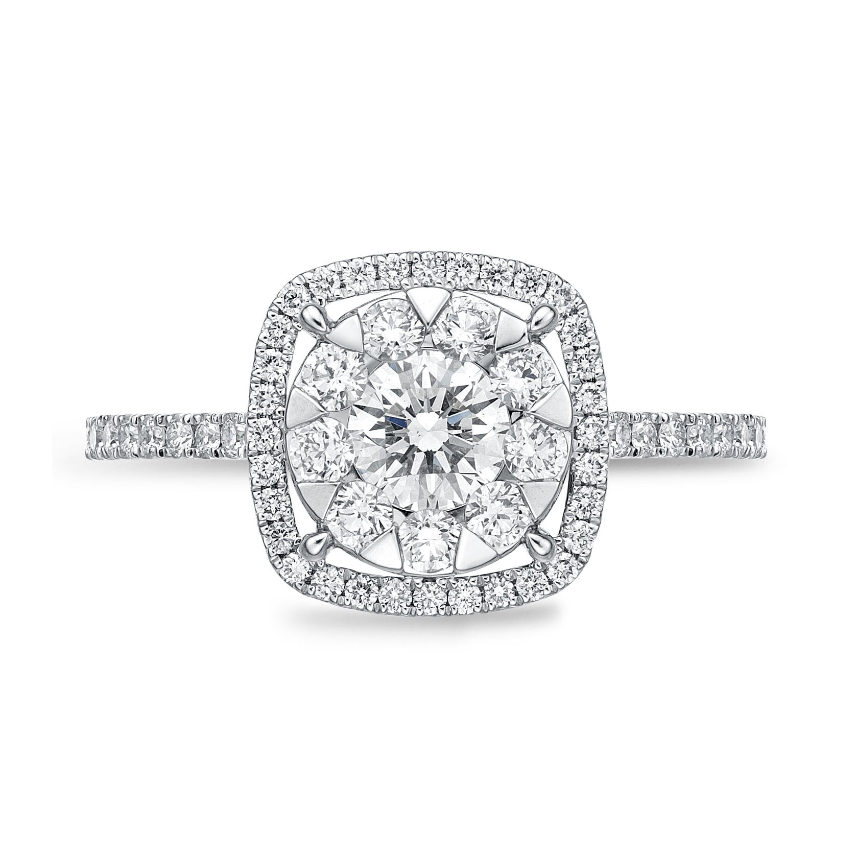 Memoire 18ct White Gold 0.60 Carat Diamond Bouquet Cushion Halo Solitaire Ring