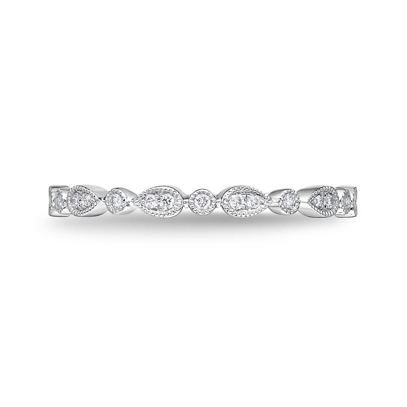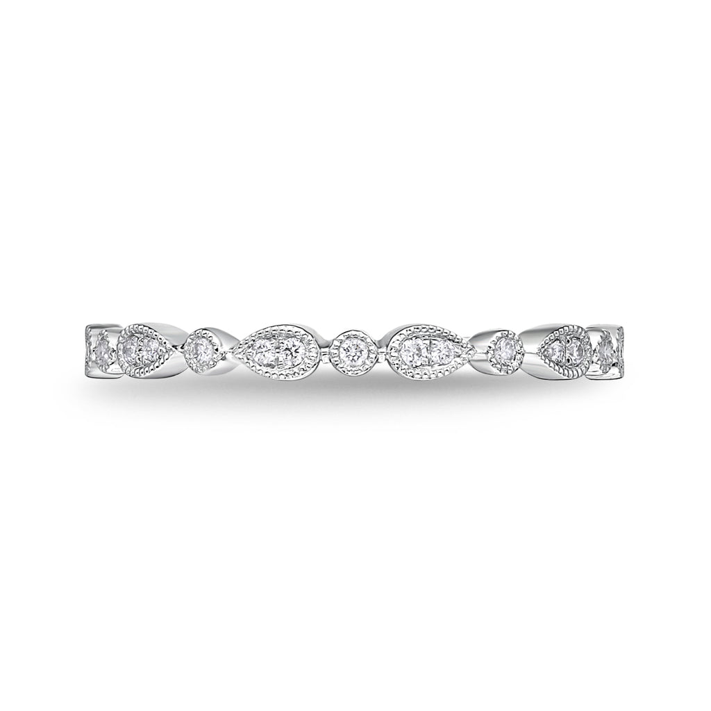 Memoire 18ct White Gold Vintage Round & Illusion Pear Stack Ring with 19 Diamonds