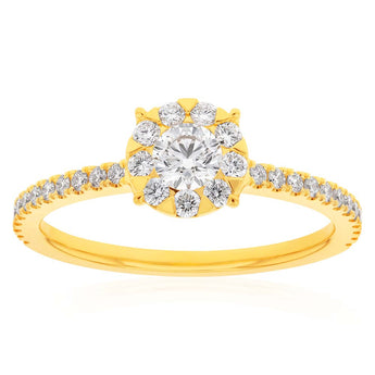 Memoire 18ct Yellow Gold 0.70 Carat Diamond Bouquet Halo Solitire Ring