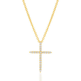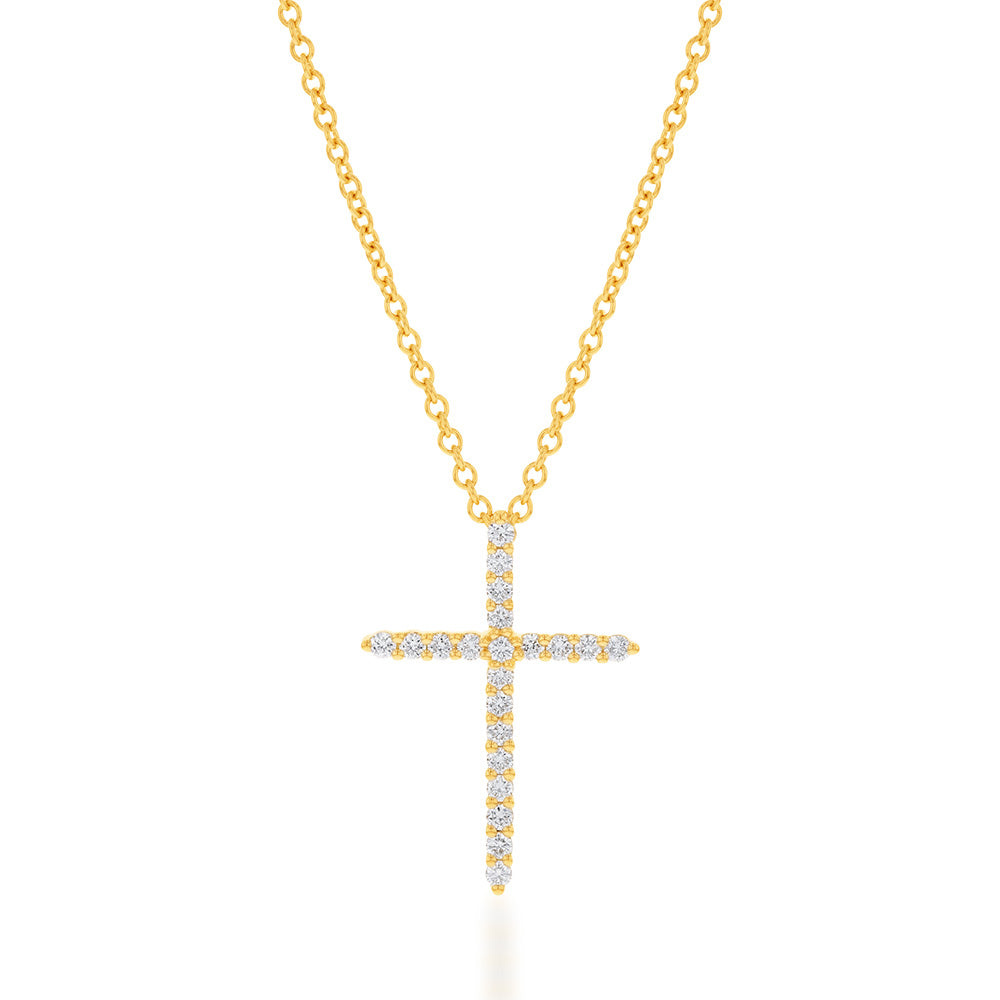 Memoire 18ct Yellow Gold 1/5 Carat Diamond Single Prong Cross Pendant on 45cm Chain