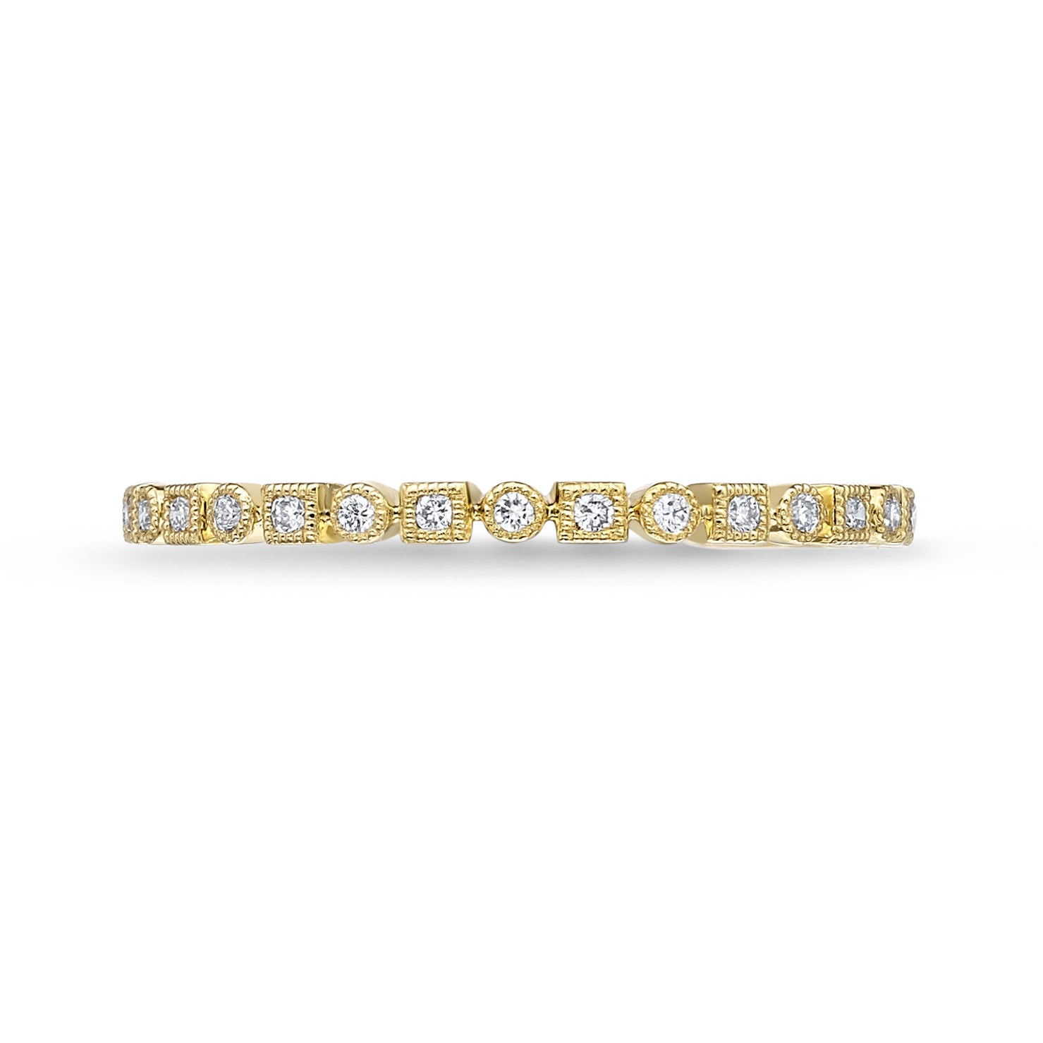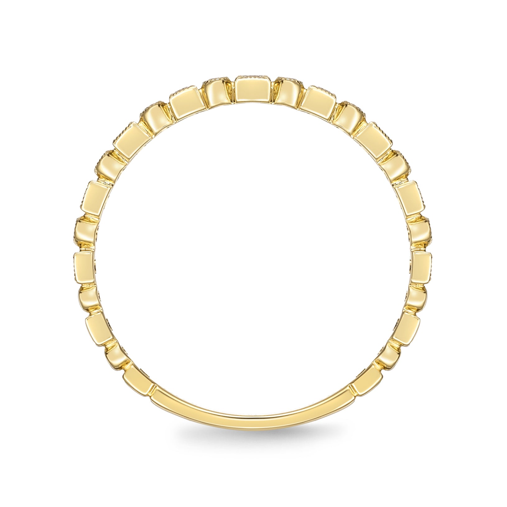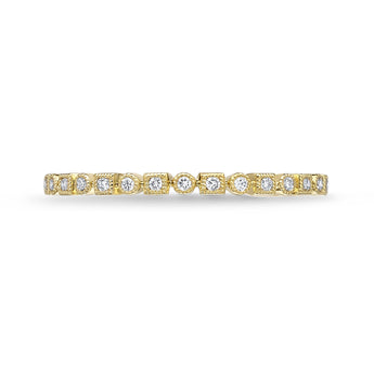 Memoire 18ct Yellow Gold Vintage Square and Round Stack Ring with 17 Diamonds