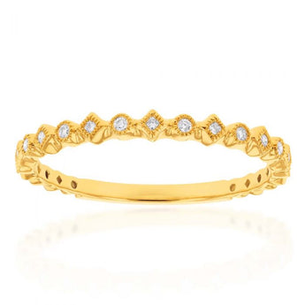 Memoire 18ct Yellow Gold Vintage Square On Point & Round Stack Ring with 15 Diamonds