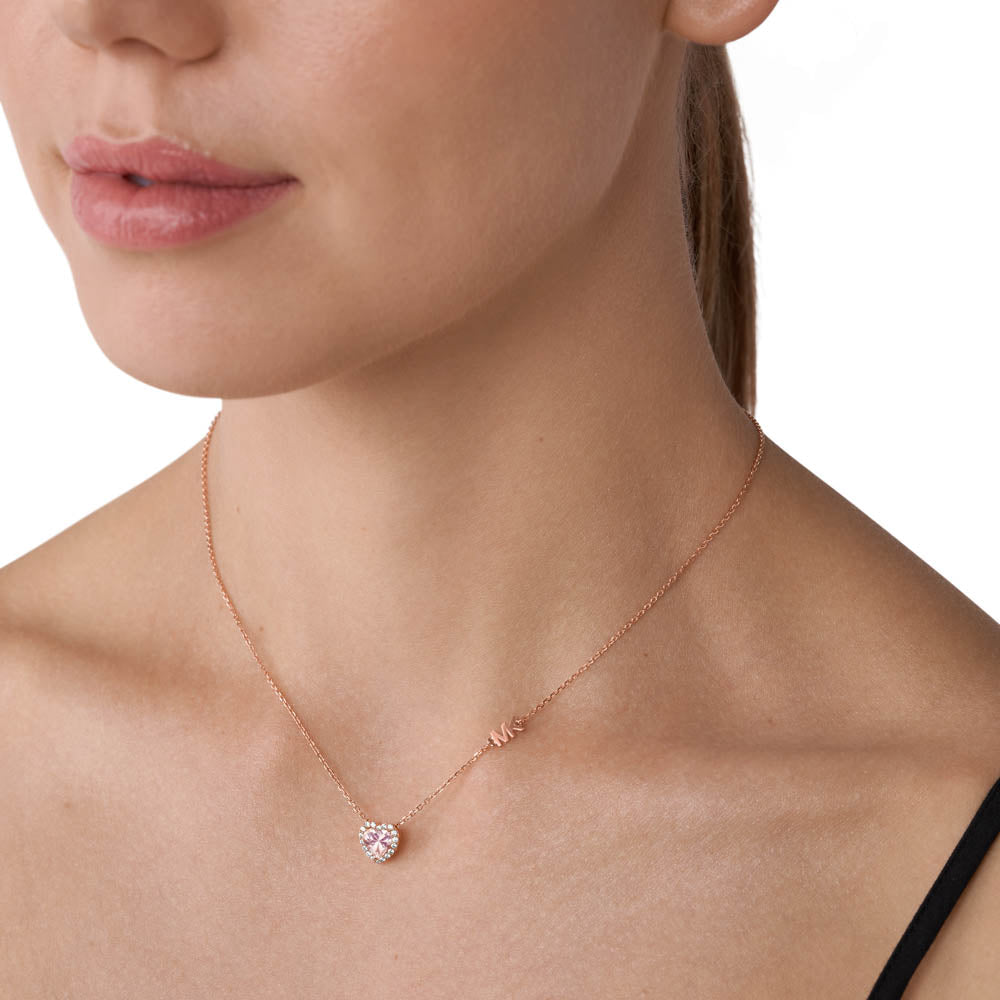 Michael Kors 14ct Rose Gold Plated Heart Pendant On Chain