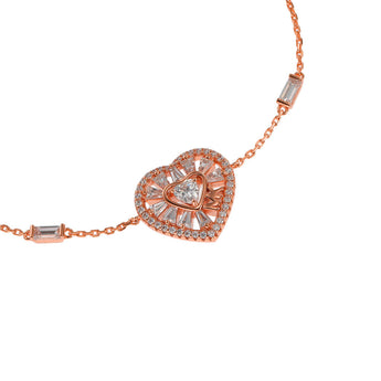 Michael Kors 14ct Rose Gold Plated Sterling Silver Tapered Baguette CZ Heart Bracelet