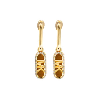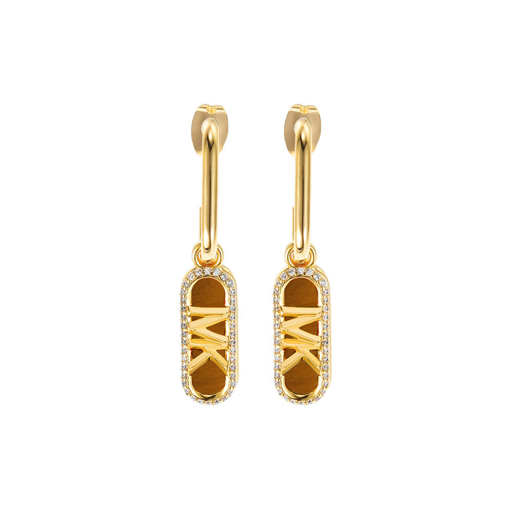 Michael Kors 14ct Yellow Gold Plated Brass Tiger's Eye Empire Charm Drop Earring