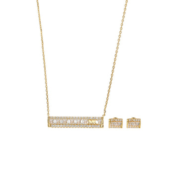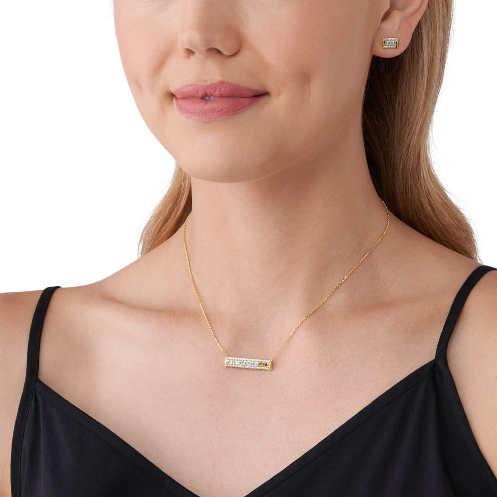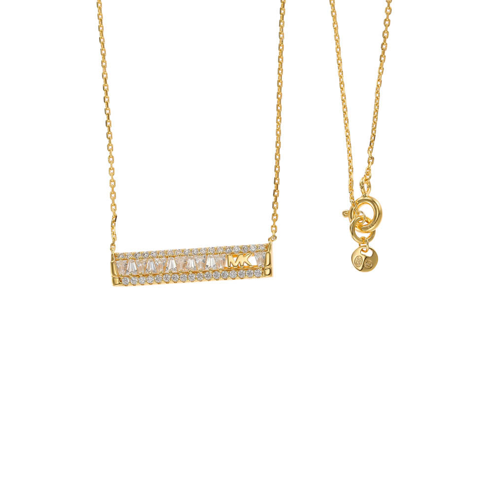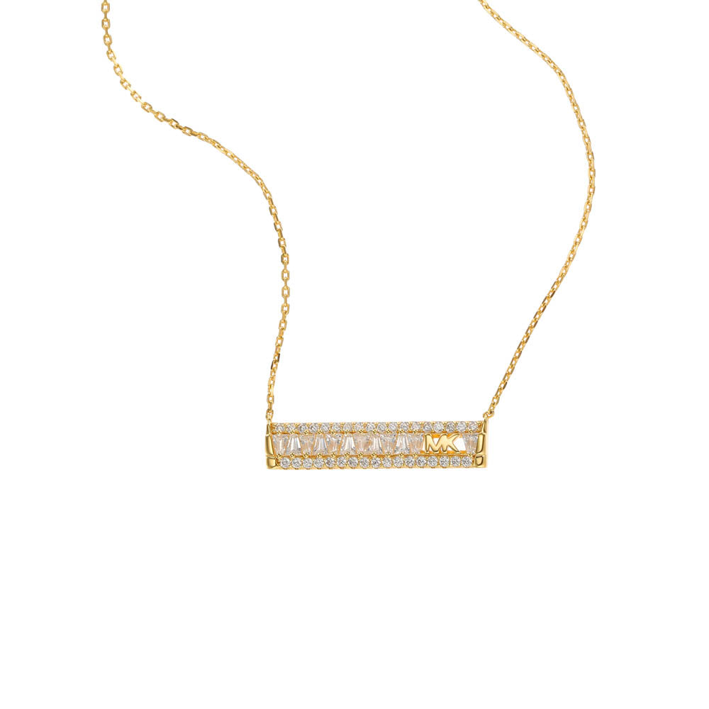 Michael Kors 14ct Yellow Gold Plated Sterling Silver Tapered Baguette Bar Earring & Pendant Chain Set