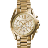 The Michael Kors MK5605 Bradshaw Chronograph is a bold and sophisticated timepiece in a striking gold tone. Featuring a 43mm gold case and matching gold dial, this watch commands attention with its classic design. It’s powered by precise quartz movement and includes chronograph functionality for accurate timekeeping. The 17mm strap width and stainless-steel bracelet ensure a comfortable fit. With a 100-meter water resistance, this watch offers both style and durability, making it a standout accessory for any occasion.