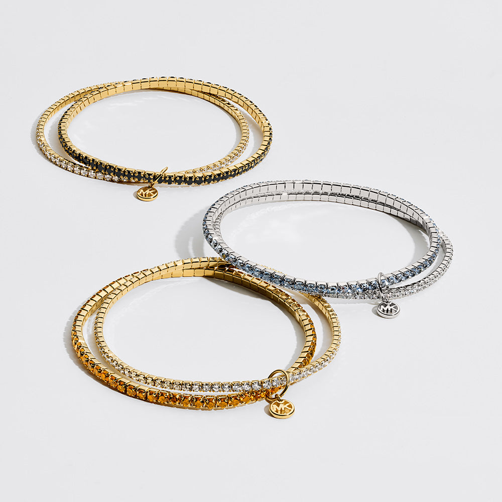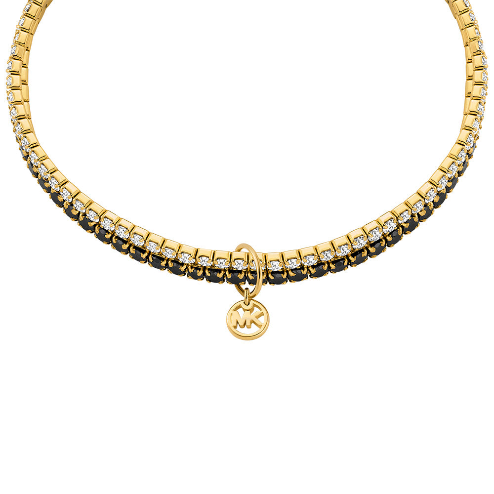 Michael Kors Gold Plated Brass Clear And Black Zirconia Stretch Tennis Bracelet