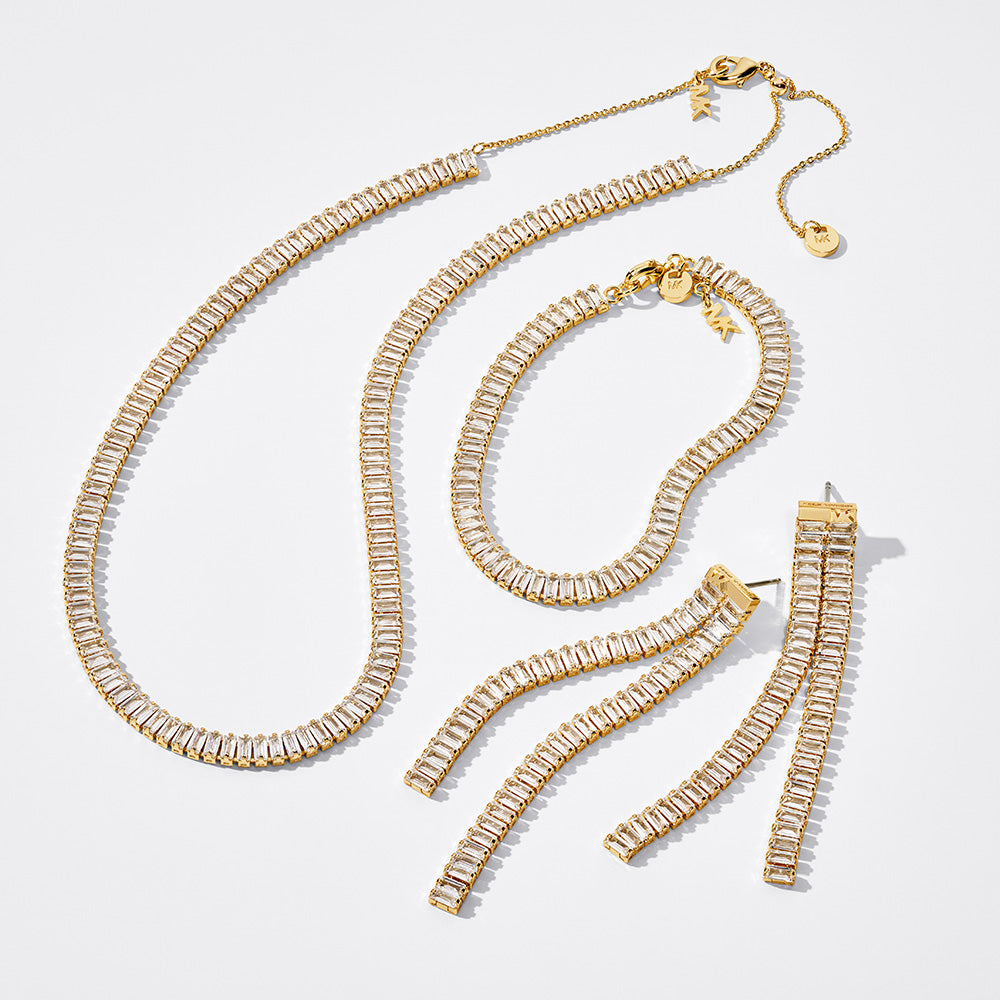 Michael Kors Gold Plated Brass Zirconia Baguette Drop Statement Earrings
