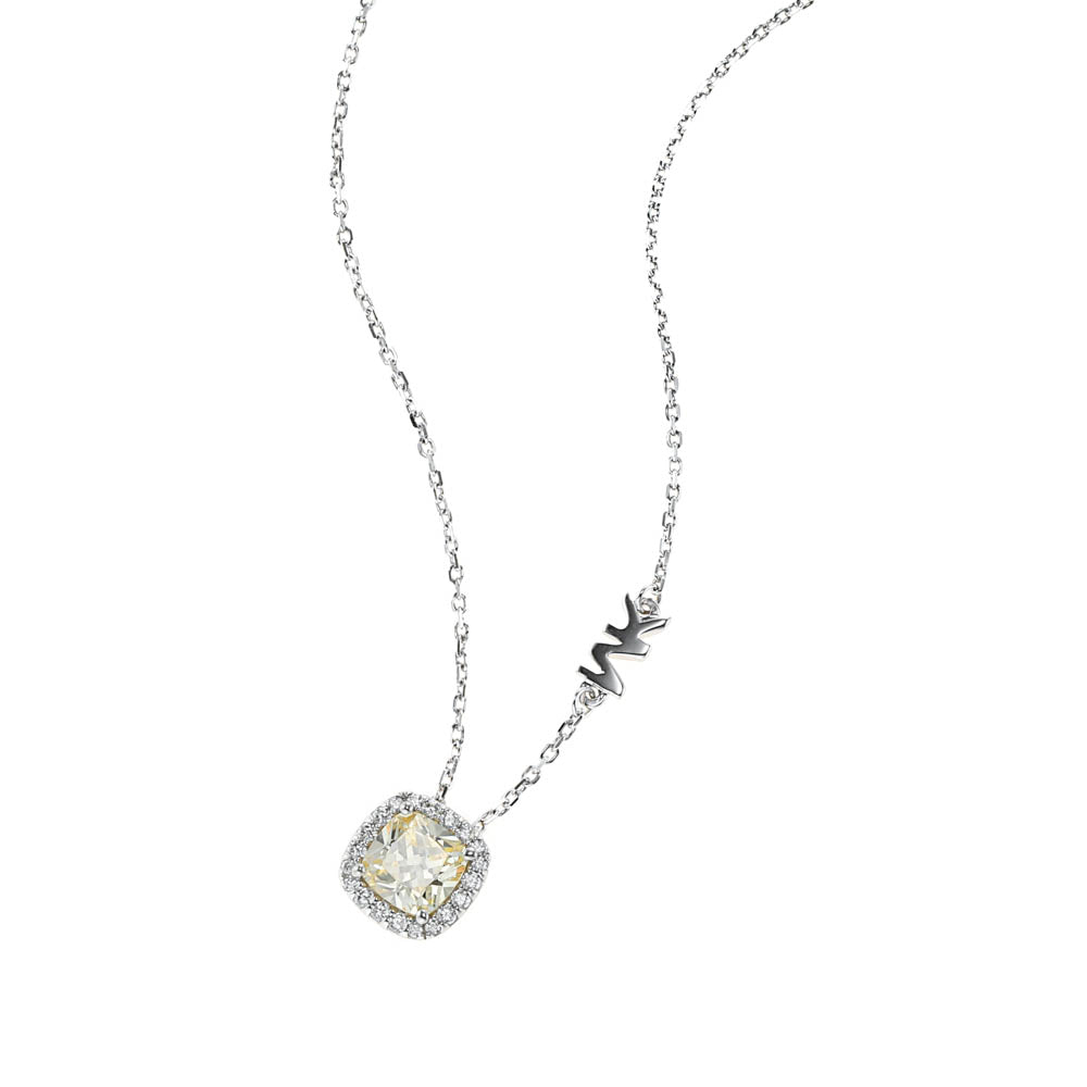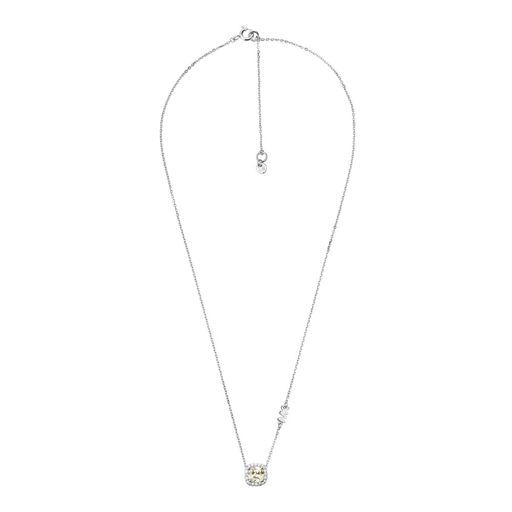 Michael Kors Sterling Silver Premium Pave Cushion Cut Pendant with Chain