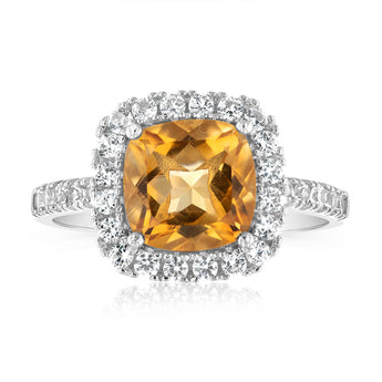 Natural Citrine & Created White Sapphire Ring Sterling Silver