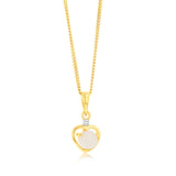 Natural Round 5mm Opal Heart Shaped Diamond Pendant in 9ct Yellow Gold