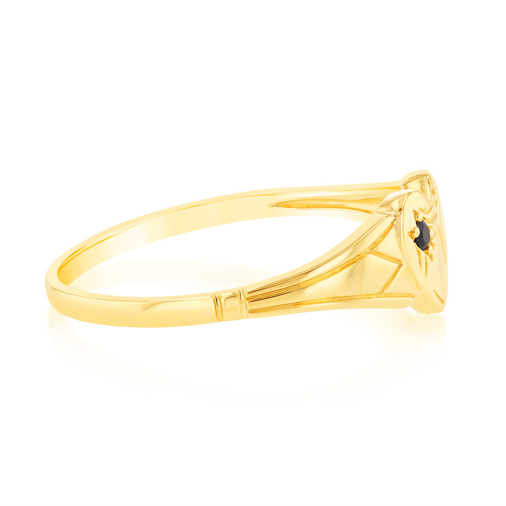 Natural Sapphire Heart Signet Ring in 9ct Yellow Gold