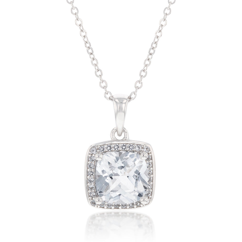 Natural White Sapphire Cushion Cut Pendant and Earring Set on Chain in Silver