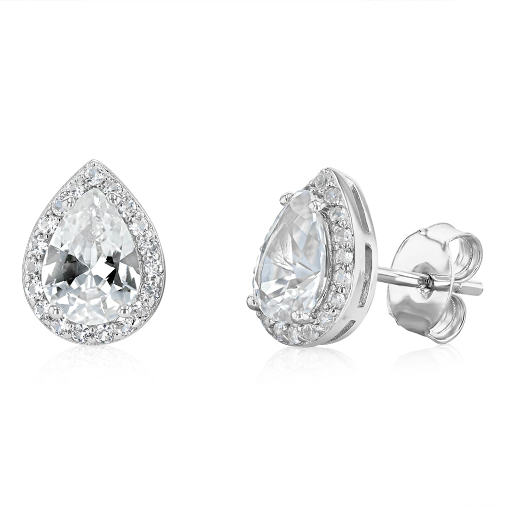 Natural White Sapphire Pear Shaped Pendant and Earring Set Sterling Silver