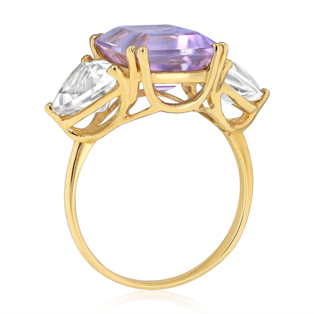 Natural White Topaz and Amethyst Ring in 9ct Yellow Gold