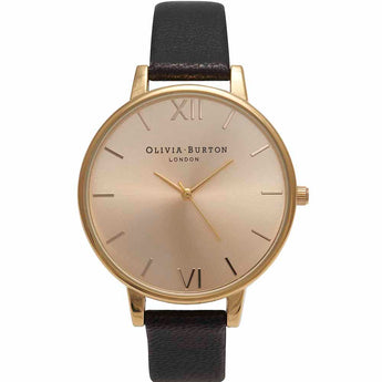 With its elegant leather band and timeless roman numeral digits, this Olivia Burton watch is an ideal everyday timepiece. Wear it with anything from a classic pair of jeans and a daring leather jacket to an elegant evening dress. Features: /- Gold stainless steel case /- Champagne coloured dial /- Mineral crystal /- Quartz movement /- 1 ATM water resistance