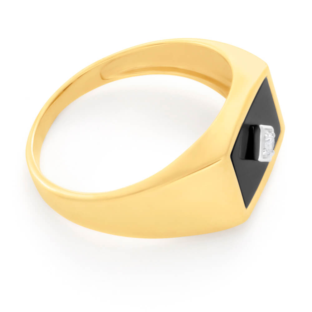 Onyx and Diamond Gents Ring in 9ct Yellow Gold