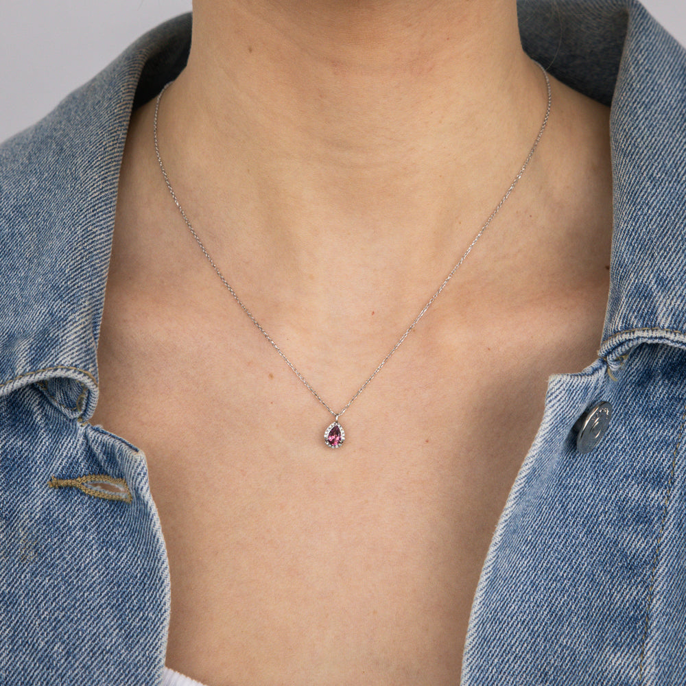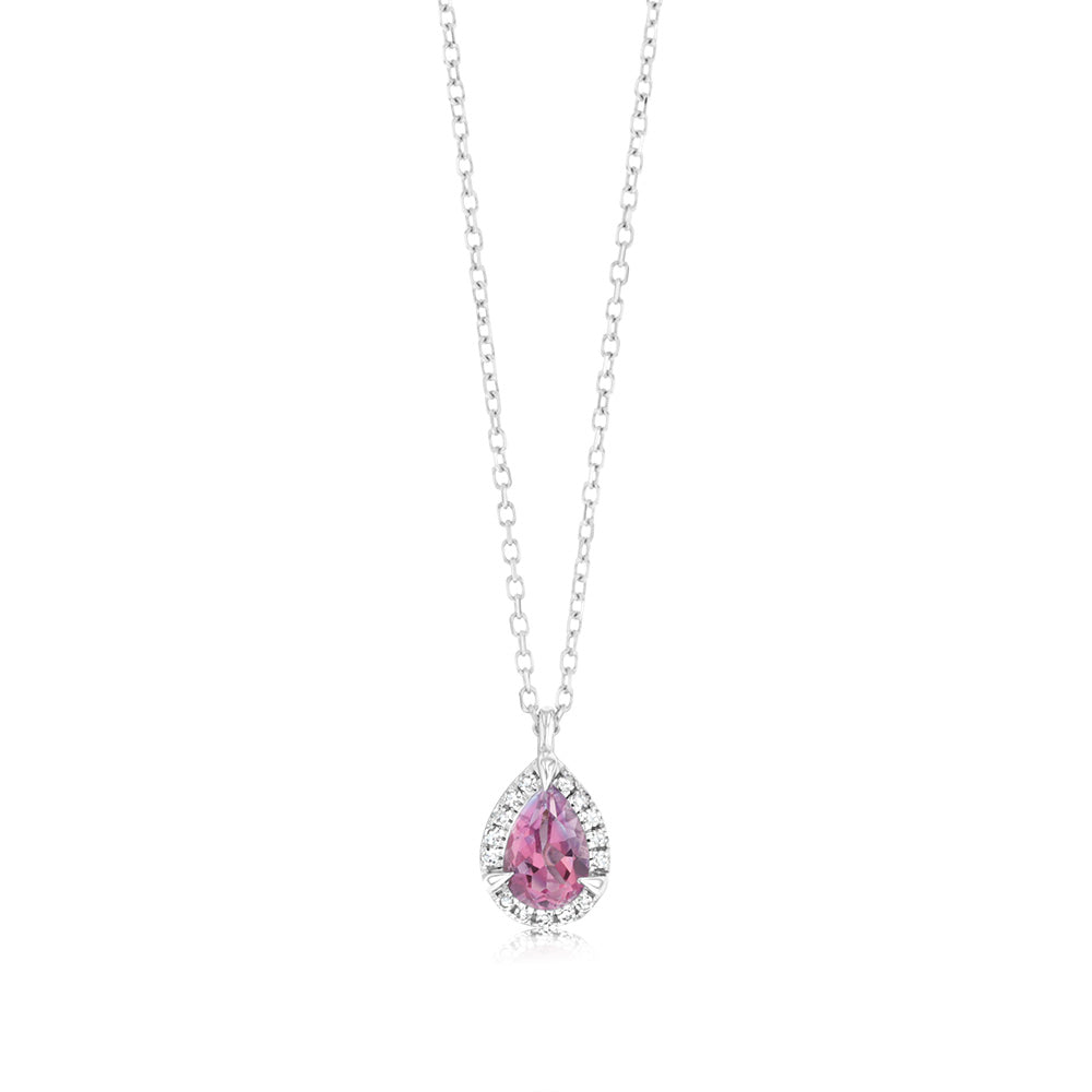Pink Topaz and Diamond Pendant in 9ct White Gold