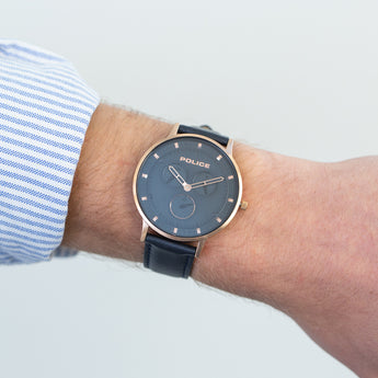 Driven by Quartz Movement, this refined watch boasts a modest 42mm case size and is encased in durable stainless steel. Its leather band ensures both style and comfort. While exuding elegance, it remains practical with a water resistance of 30 meters, making it suitable for everyday wear.