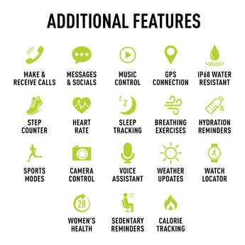 Stay connected with call and message notifications directly on your wrist. It also tracks your health and wellness, including step count, heart rate, blood oxygen, calories, and sleep. Plus, enjoy music control, GPS, camera control, and more!