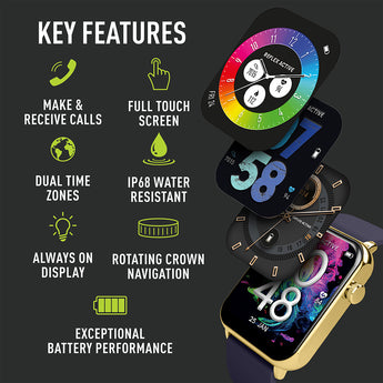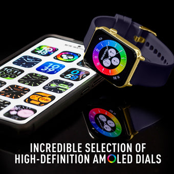 The smooth crown navigation lets you scroll through options or use the touch screen. Personalize your watch with a variety of exclusive dials, including animated ones, or even a photo from your gallery.